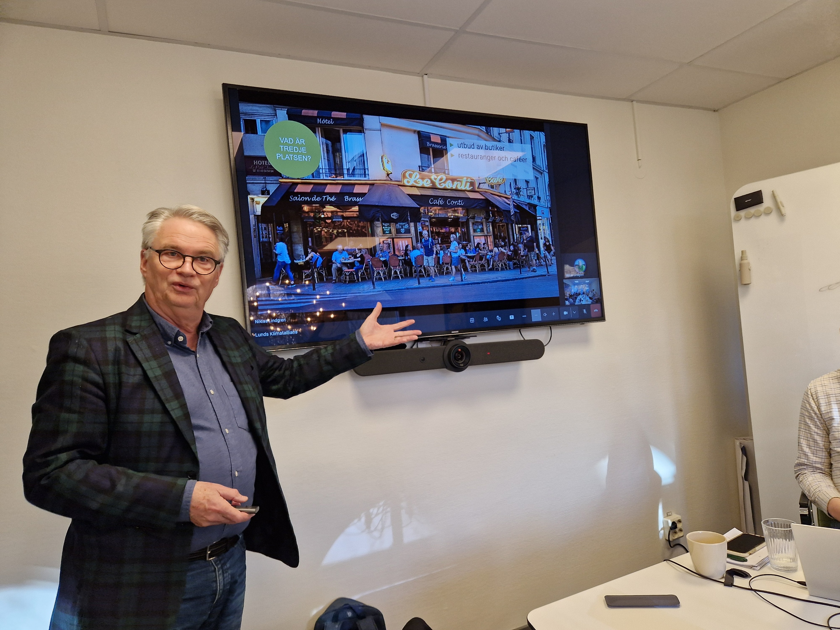 Simon Svendler, Lunds kommun, redogjorde för kommunens klimatdialoger på Norra Fäladen, om vad som krävs för att medborgarna ska kunna minska sin klimatpåverkan och samtidigt leva ett gott liv.