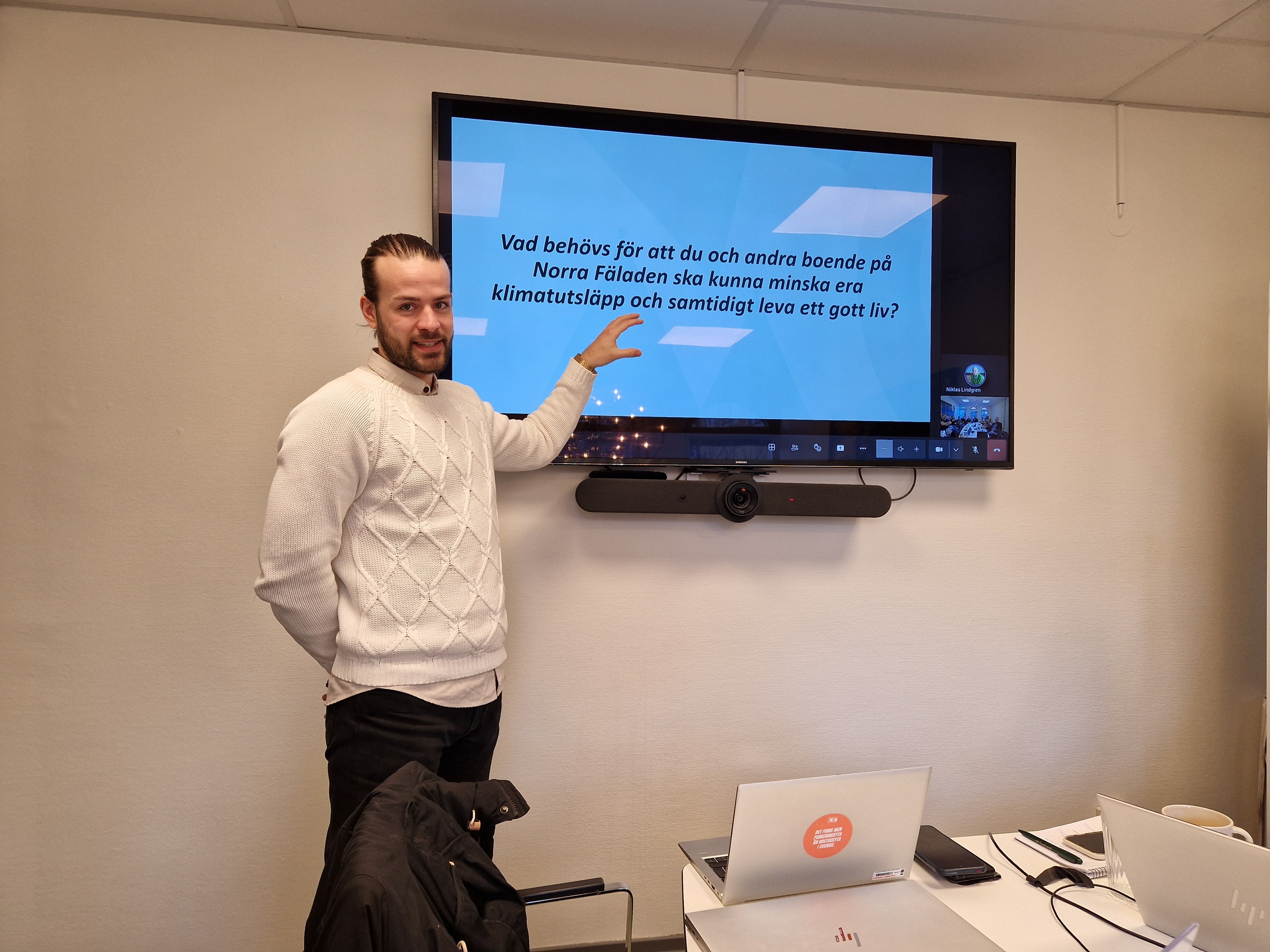Simon Svendler, Lunds kommun, redogjorde för kommunens klimatdialoger på Norra Fäladen, om vad som krävs för att medborgarna ska kunna minska sin klimatpåverkan och samtidigt leva ett gott liv.
